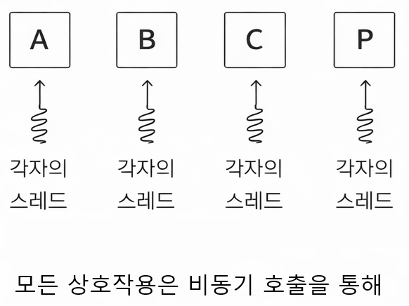 모든 상호작용이 비동기 호출이므로, 설계를 잘못하면 호출이 기하급수적으로 증가할 수 있습니다. 이 문제는 별도의 최적화 전략이 필요하며, 추후 다른 글에서 다뤄보겠습니다.